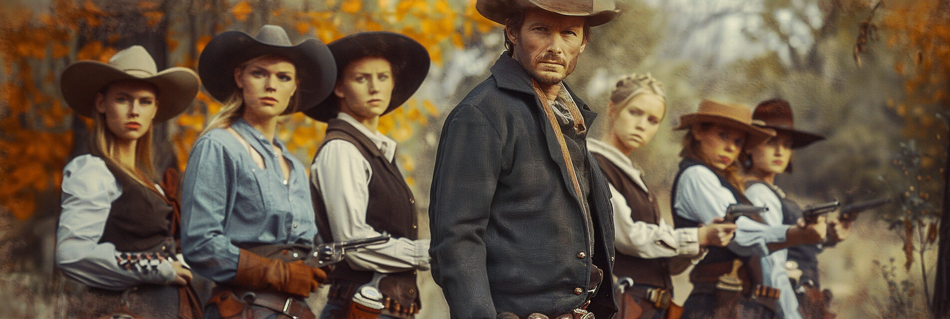 A U. S. Marshal finds himself in the company of six women outlaws and is indebted to them for saving his life.